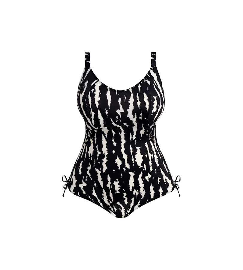 Feel effortlessly gorgeous in Elomi’s Echo Shell Non Wired Swimsuit in our Black colourway, showcasing a trendy linear, mark-making design in bold black and calming cream hues. Crafted to offer you a beautifully relaxed, less structured shape without moulded cups plus, a suspended shelf is set into a wide underband frame for subtle support. The clasp fastening and low scoop keyhole back make this an easy to wear piece that combines fashion and practicality for the perfect poolside look.