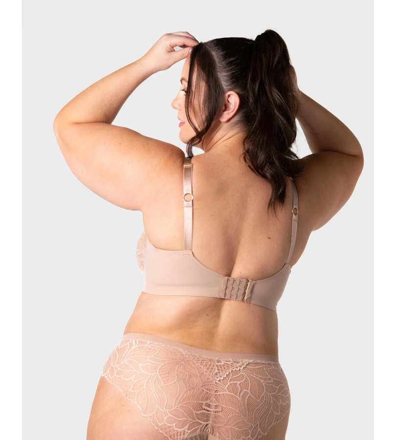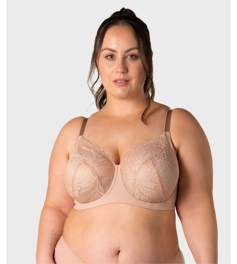 Fall in love with lace that supports without compromise, based on our top selling style Temptation Bra. Refined is designed to support and uplift post-breastfeeding bodies. This underwired bra features flexible support that moves with you, ensuring comfort throughout the day. Crafted with soft lace and a smooth microfibre base, it offers a seamless fit under clothing. Innovative underarm panel delivers a sleek, polished finish under clothing. Adjustable straps and a cross-back option provide a customisable fit, while the full coverage design offers natural lift and shape. Experience the perfect blend of style and support with the Refined Flexiwire Bra.