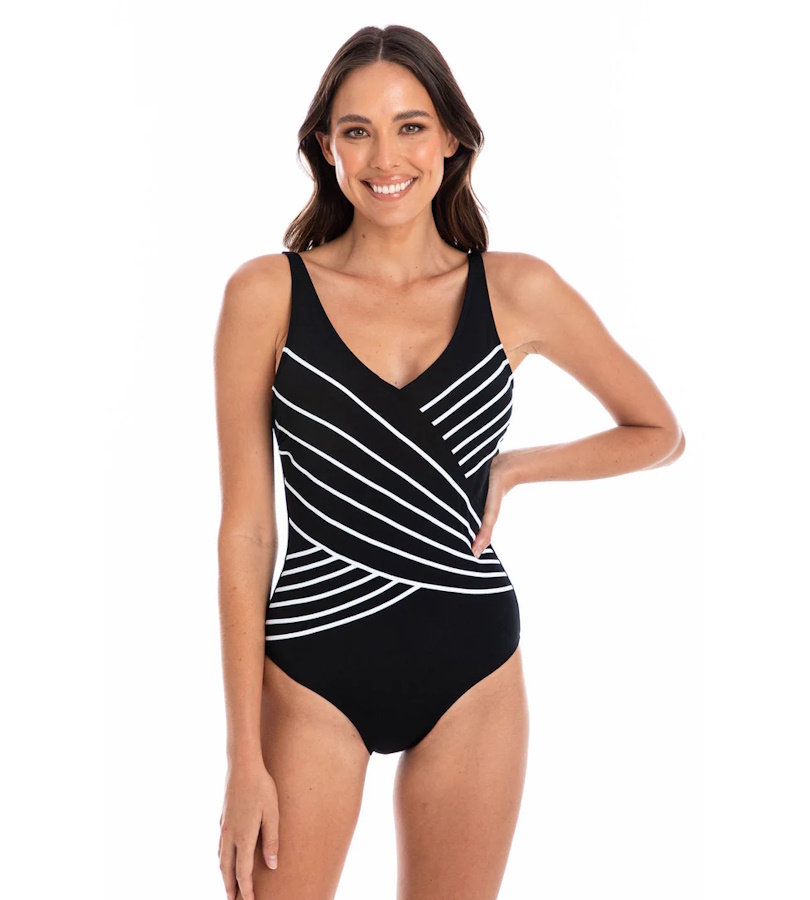 Introducing the Togs classic crossover one-piece swimsuit. This elegant swimsuit features a flattering silhouette that enhances your natural curves. Designed with wire-free support, it offers both comfort and freedom of movement, making it perfect for any water activity. Made with our specially engineered and tested chlorine-resistant fabric, it is built to withstand the rigours of swimming in chlorine. For a longer-lasting swimsuit, we recommend hand washing in cold water immediately after use to rinse out the chlorine.
